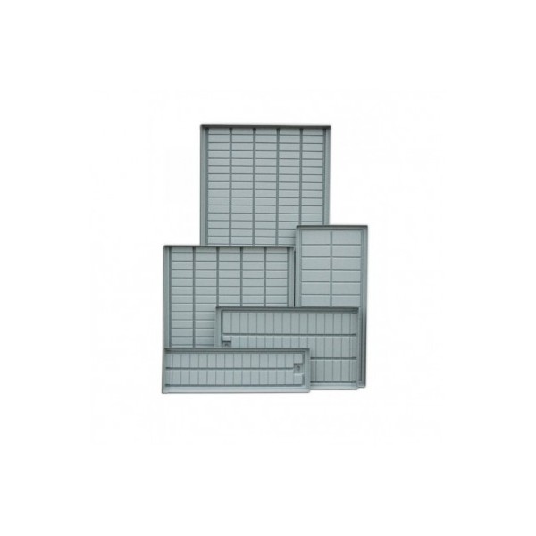 Son muy prácticas y limpias ya que el drenaje queda recogido en un punto; son las más utilizadas en invernaderos y cuentan con dos filtros de drenaje (opcionales) que evitan la entrada de partículas de sustrato o hojas en el depósito de alimentación. Para evitar que se bloqueen los filtros o que crezcan algas, es recomendable utilizar estas bandejas con la manta de riego especial para este tipo de aplicaciones.