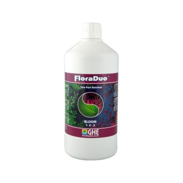 El GHE FloraDuo Bloom es un fertilizante para la etapa de floración de tus plantas que hará que éstas crezcan fuertes y sanas en períodos cortos de tiempo.