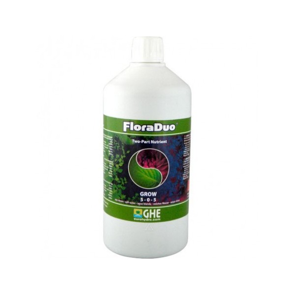 El GHE FloraDuo Grow Hard Water es un fertilizante para la etapa de crecimiento creado para los sistemas de cultivo que utilizan aguas duras.
