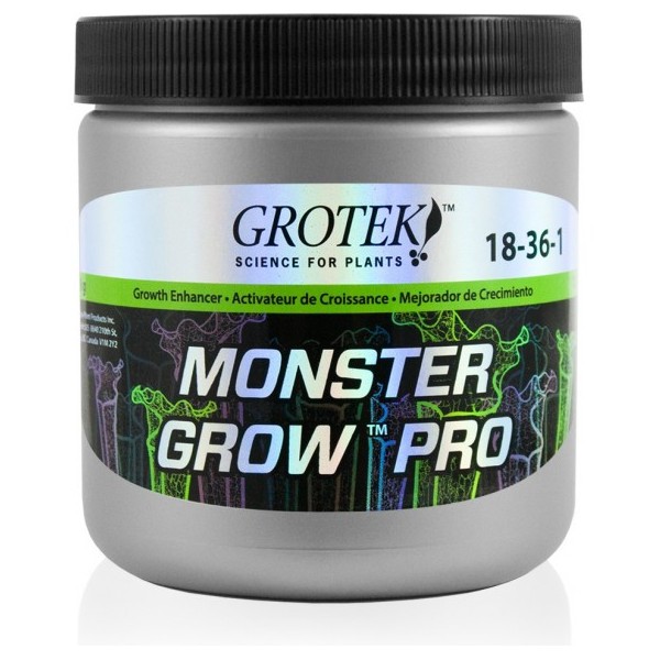 Monster Grow Pro es un suplemento puro diseñado para aumentar el desarrollo de las hojas y conseguir más raíces antes del desarrollo de la planta. Es un polvo soluble en agua que combina minerales y compuestos orgánicos para el desarrollo de la planta.