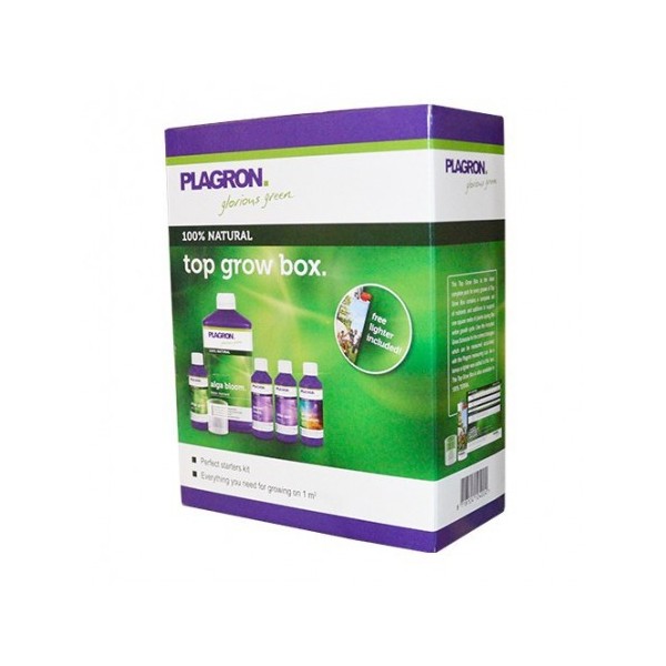 La Plagron Top Grow Box 100% Natural es un kit de fertilizantes para todas las etapas del ciclo de cultivo que utiliza elementos biológicos y orgánicos. Ideal para cultivos pequeños.