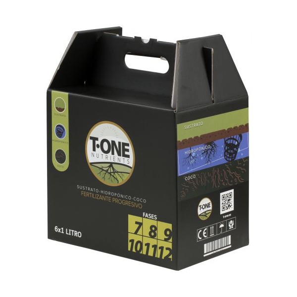 T-One es la nutrición completa y práctica para todo el ciclo de cultivo, crecimiento y floración, simplemente aportando el contenido del envase en cada una de las 12 fases del ciclo de cultivo y complementándolo con Bioestimulantes especialmente diseñados para potenciar la productividad y calidad de su cosecha.